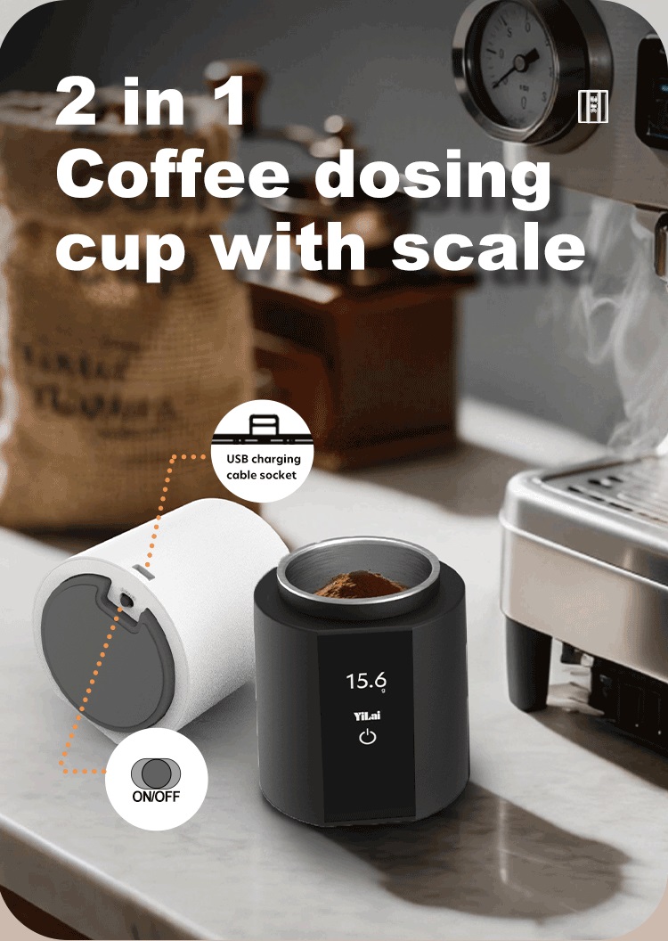 500Barista-Grade Coffee Scale Dosing Cup | 2-in-1 Ground Coffee Weigher for 58mm Portafilter | Accurate Dose Control