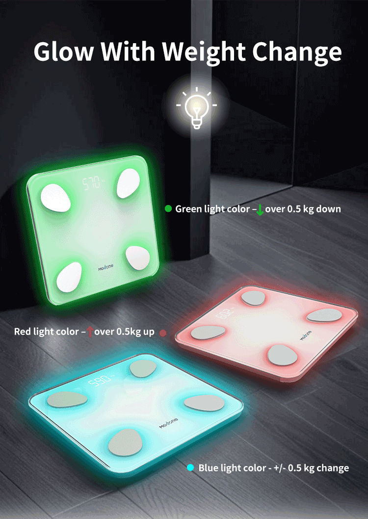 • Scale weight platform will change lights color compare with lasted weight measurement.