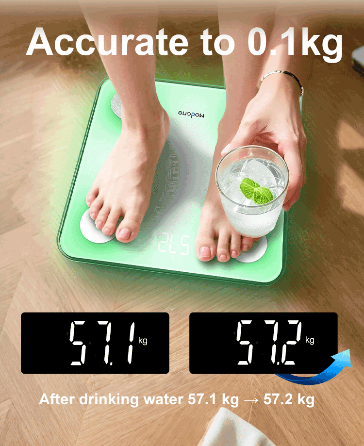 • ACCURATE MEASUREMENT. High precision sensors and 4 sensitive electrodes measure in increments of 0.2 lbs with a maximum capacity of 396 lbs, to ensure the accuracy of each value.