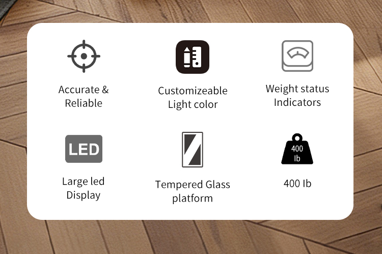 • Scale weight platform will change lights color compare with lasted weight measurement.